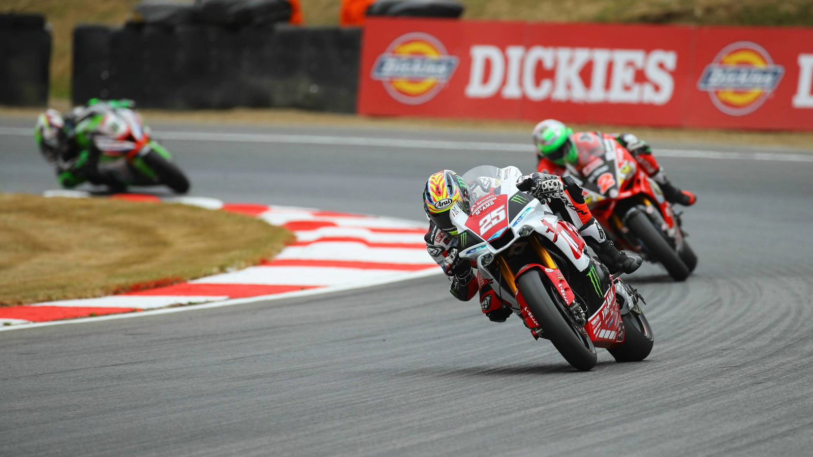 The McAMS Yamaha rider, running the special edition 20th anniversary YZF-R1 livery, bolted into the lead at the first corner ahead of pole-sitter Irwin with the pair trading passes over the opening two laps, while behind the front two a five-rider battle sparked for third place.