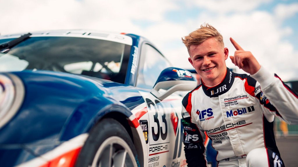 JTR's Dan Harper clinches his second Porsche Carrera Cup GB race victory of the 2018 season after overcoming the wet conditions ahead of Dino Zamparelli at Knockhill.