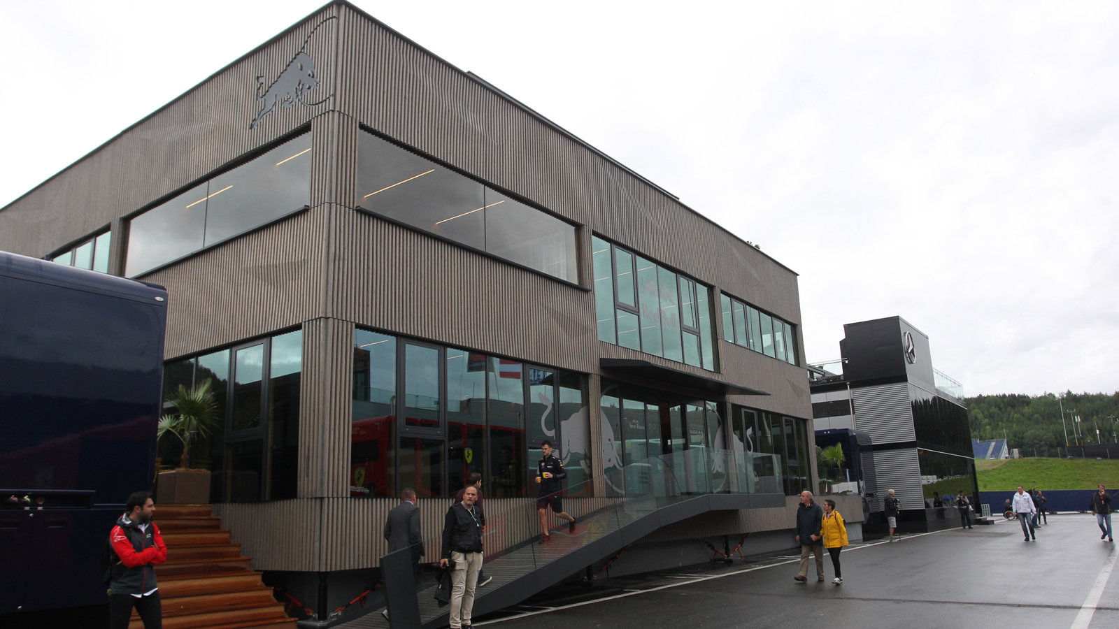 - Red Bull menyambut paddock di rumah 'Holzhaus' barunya di paddock GP Austria, dengan struktur desain kayu (secara harfiah diterjemahkan sebagai 'rumah kayu') menggantikan rumah motor Energy Station regulernya untuk akhir pekan. Ini juga memungkinkan tim untuk memindahkan Stasiun Energi langsung ke Silverstone di tengah tekanan dari sundulan tiga kali lipat. Williams telah membawa motorhome uji coba ke Austria pada akhir pekan, dengan motorhome regulernya pergi ke Silverstone.