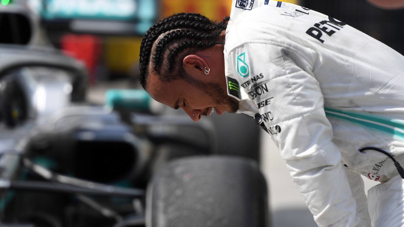 Hamilton, yang sebelum akhir pekan menjadi berita utama untuk komentarnya tentang keinginan F1 untuk lebih menuntut secara fisik, muncul dari Mercedes-nya tampak terkuras saat dia berjongkok di samping mobilnya untuk mengatur napas - dan pikiran - mengikuti intens dan emosional- balapan dikenakan biaya baik di dalam maupun di luar lintasan.