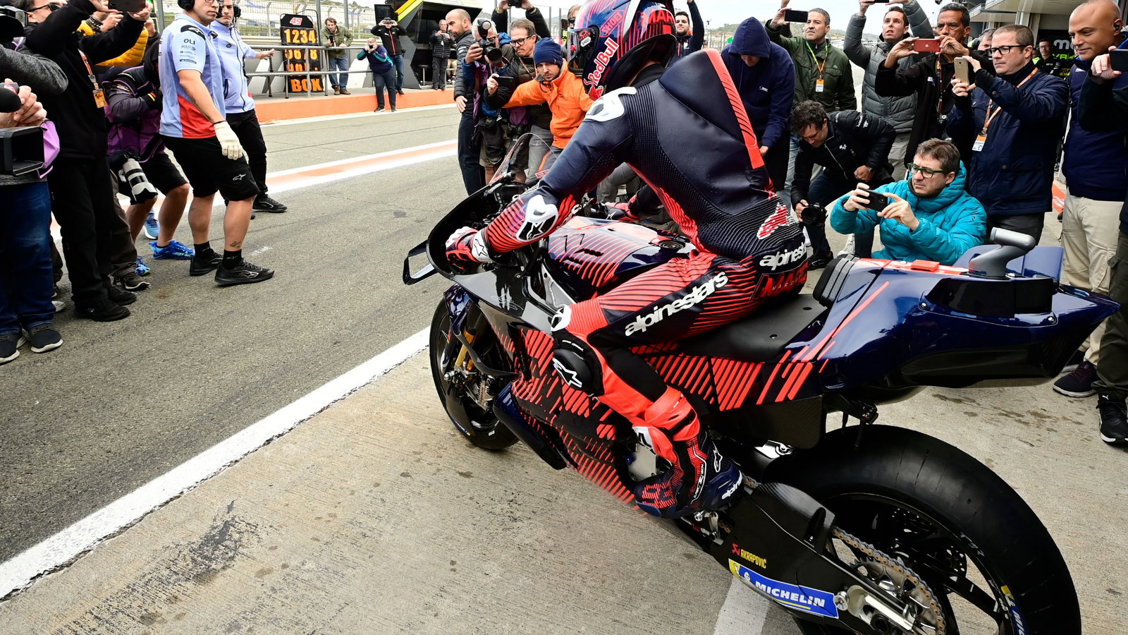 Acosta berada di urutan ke-18 dari 23 pebalap, tetapi hanya terpaut 1,223 detik dari pemimpin tes Maverick Vinales, setelah 70 lap dengan RC16.