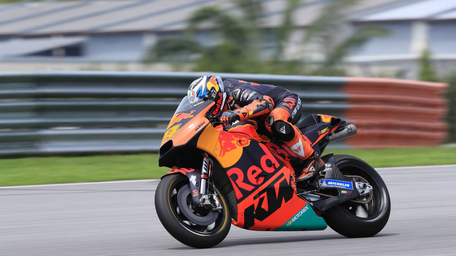 Pembalap KTM kehilangan kendali atas RC16-nya saat melakukan pengereman di Tikungan 4, motornya kemudian melesat ke samping dari trek dan masuk ke dinding.