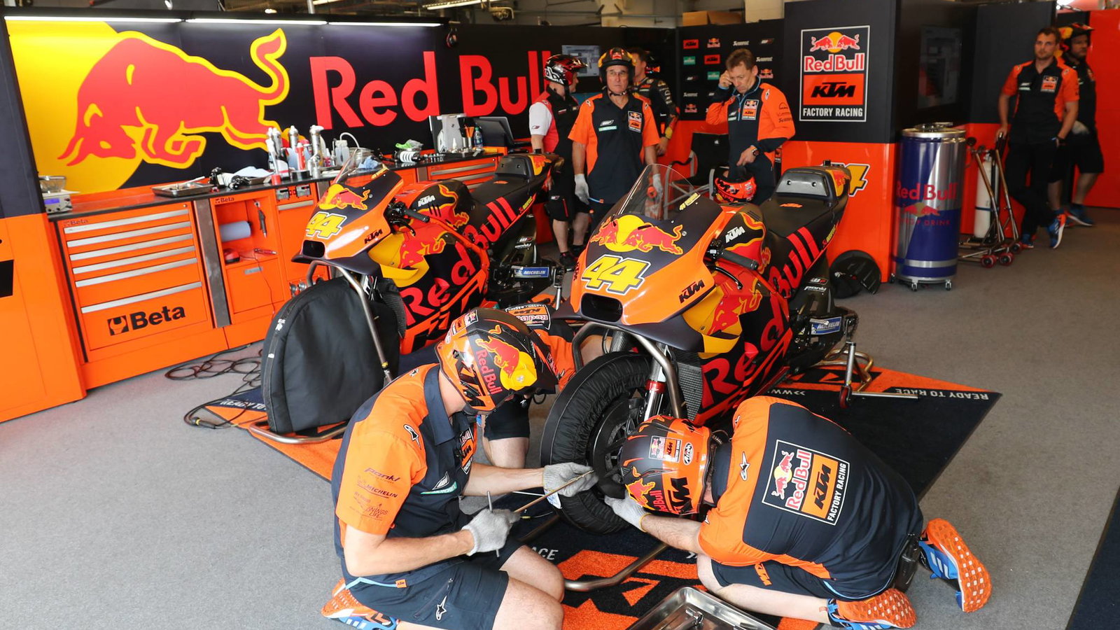 Skuad Red Bull KTM telah melanjutkan pengujian di musim dengan program dua hari di Le Mans dengan Pol Espargaro dan Johann Zarco beraksi bersama pembalap penguji Mika Kallio, sementara Dani Pedrosa tetap absen karena operasi selama musim dingin.