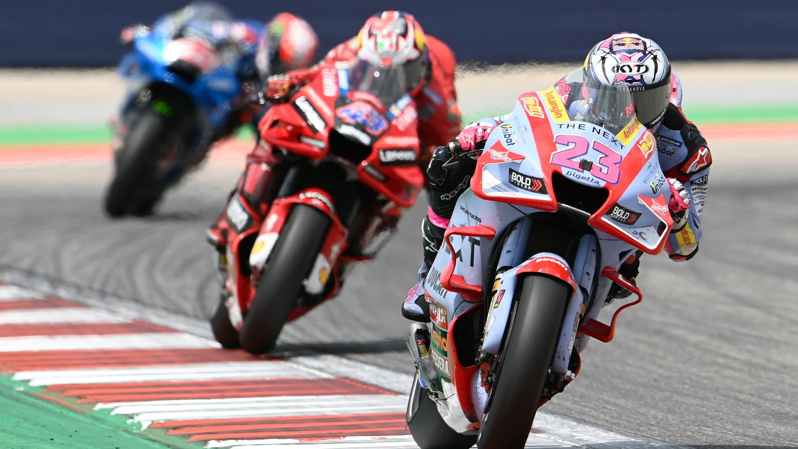 Pembalap Gresini Ducati itu memimpin dengan 61 poin, unggul 5 poin dari Alex Rins yang finis kedua di COTA, sementar Aleix Espargaro turun dua posisi jadi P3.