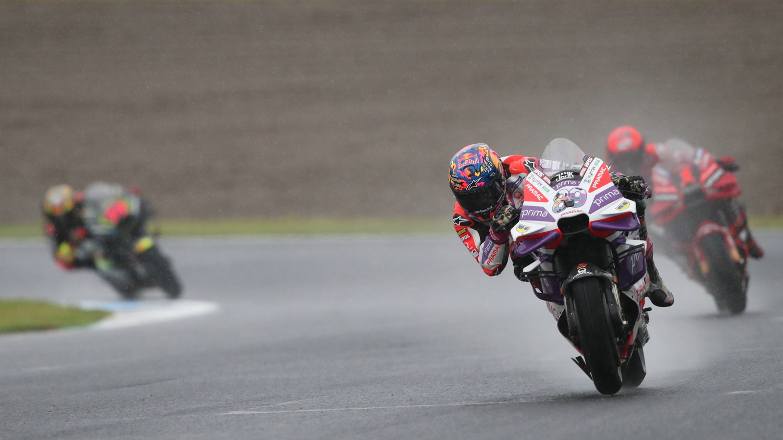Sebaliknya, Bagnaia ditangkap oleh Bezzecchi dan Marquez, saat keduanya menjatuhkan Miguel Oliveira saat hujan semakin deras.