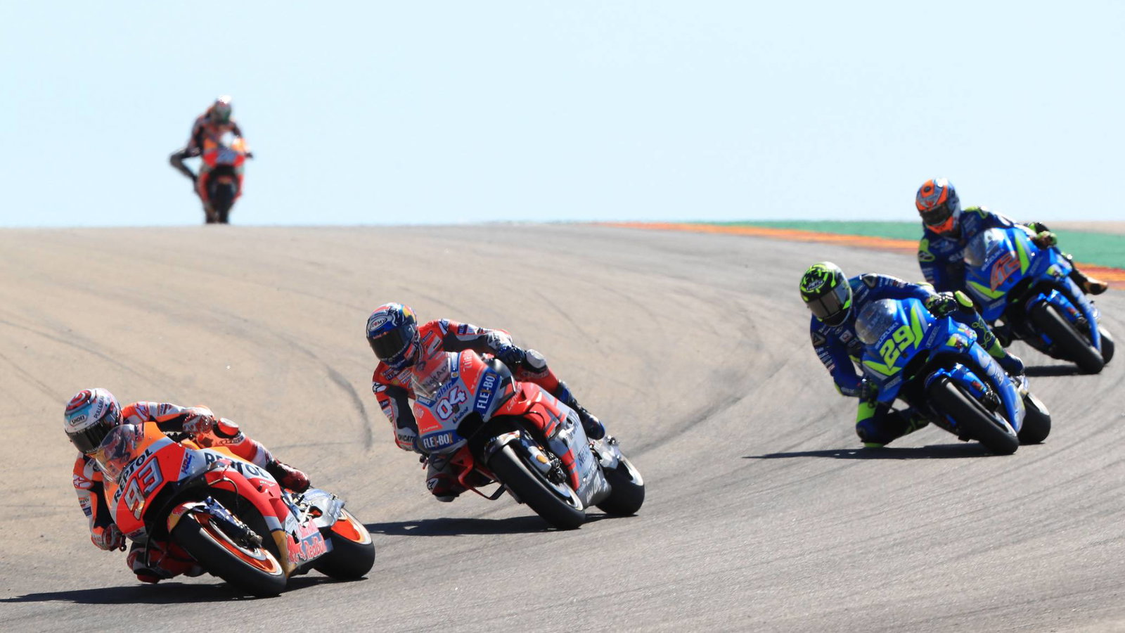 Pole man Lorenzo berada di posisi tertinggi di tikungan pertama, menderita dislokasi jari kaki, setelah itu tim utama terdiri dari Marquez, Dovizioso, dan kejutan dari Suzukis Iannone dan Rins.