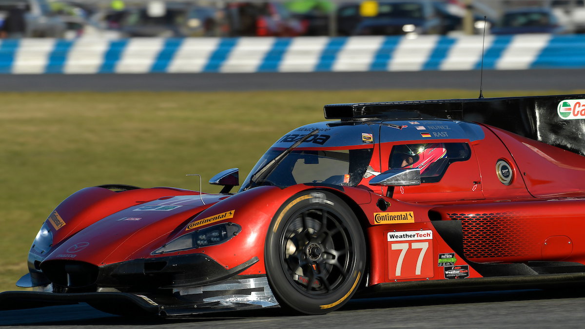 Rast memimpin tim Mazda DPi ke puncak timesheets dalam sesi latihan pertama selama satu jam pada Kamis pagi, mencatat waktu lap terbaik 1: 37,428 di sekitar tata letak 'roval' dari Daytona International Speedway.