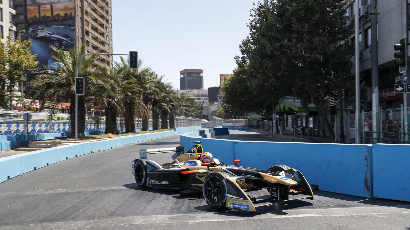 Jean-Eric Vergne will start Saturday's Santiago E-Prix from the front of the grid after grabbing his second Formula E pole position of the season, edging out Renault's Sebastien Buemi.