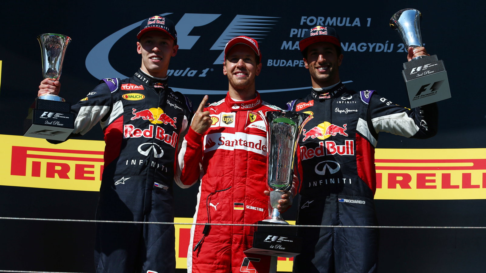 The top three finishers - Sebastian Vettel (Ferrari), Daniil Kvyat (Red Bull Racing) and Daniel Ricciardo (Red Bull Racing) - give their views on the 2015 F1 Hungarian Grand Prix