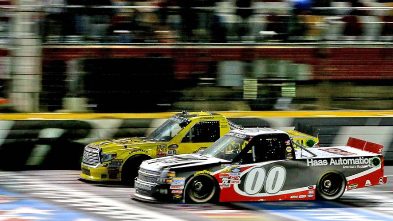 Kasey Kahne flew in from Texas to claim victory in Sunday afternoon's Good Sam Roadside Assistance 200 NASCAR Camping World Truck Series race at Rockingham Speedway.