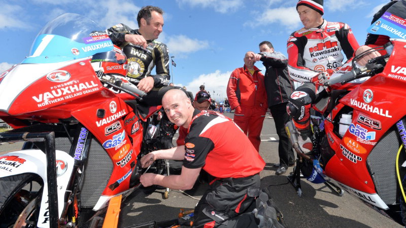 KMR Kawasaki rider Jeremy McWilliams holds onto pole position for Supertwin 650 races at North West 200