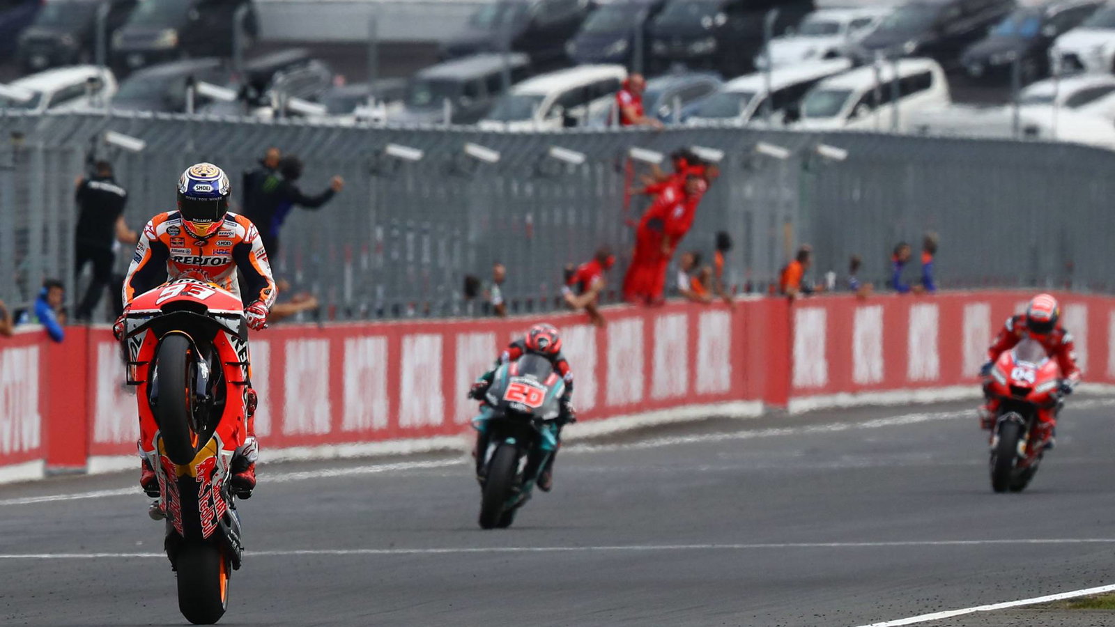 Japanese MotoGP - Race Results Marquez wins the Japanese MotoGP, joining Mick Doohan on 54 premier-class wins and handing Honda the 2019 constructors' title to add to his own riders' crown. After a brief tussle with Quartararo on the opening lap, Marquez broke one-second clear and then edged into the distance.
