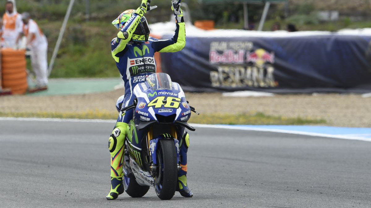Valentino Rossi was a commanding winner of the Jerez MotoGP, leading from start to finish to claim his maiden premier class victory of 2016 from team-mate Jorge Lorenzo.