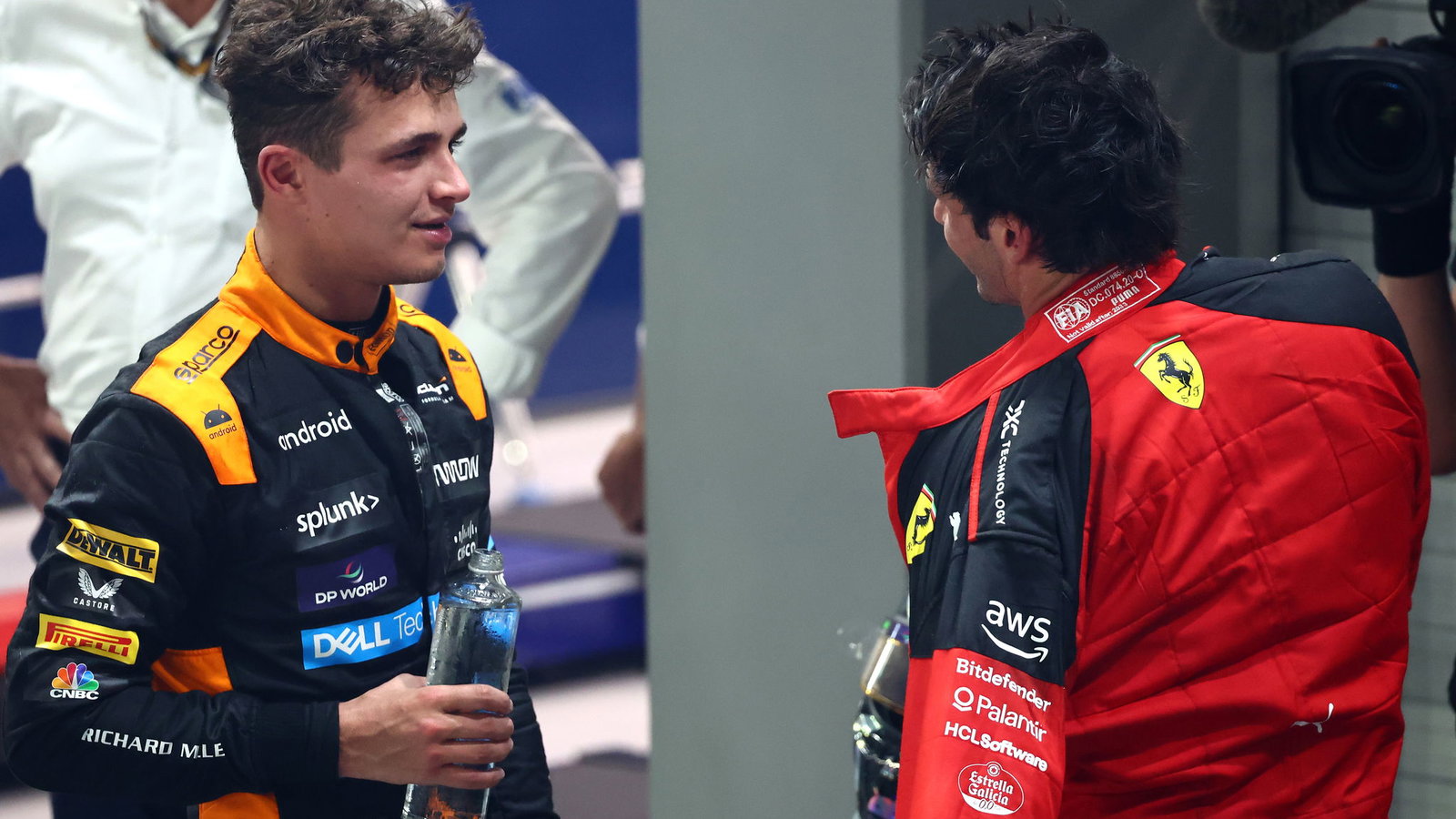 Carlos Sainz says he and Lando Norris 'should buy each other drinks' after Ferrari driver's clever DRS tactic helps him seal victory and Norris P2 in a dramatic Singapore Grand Prix.