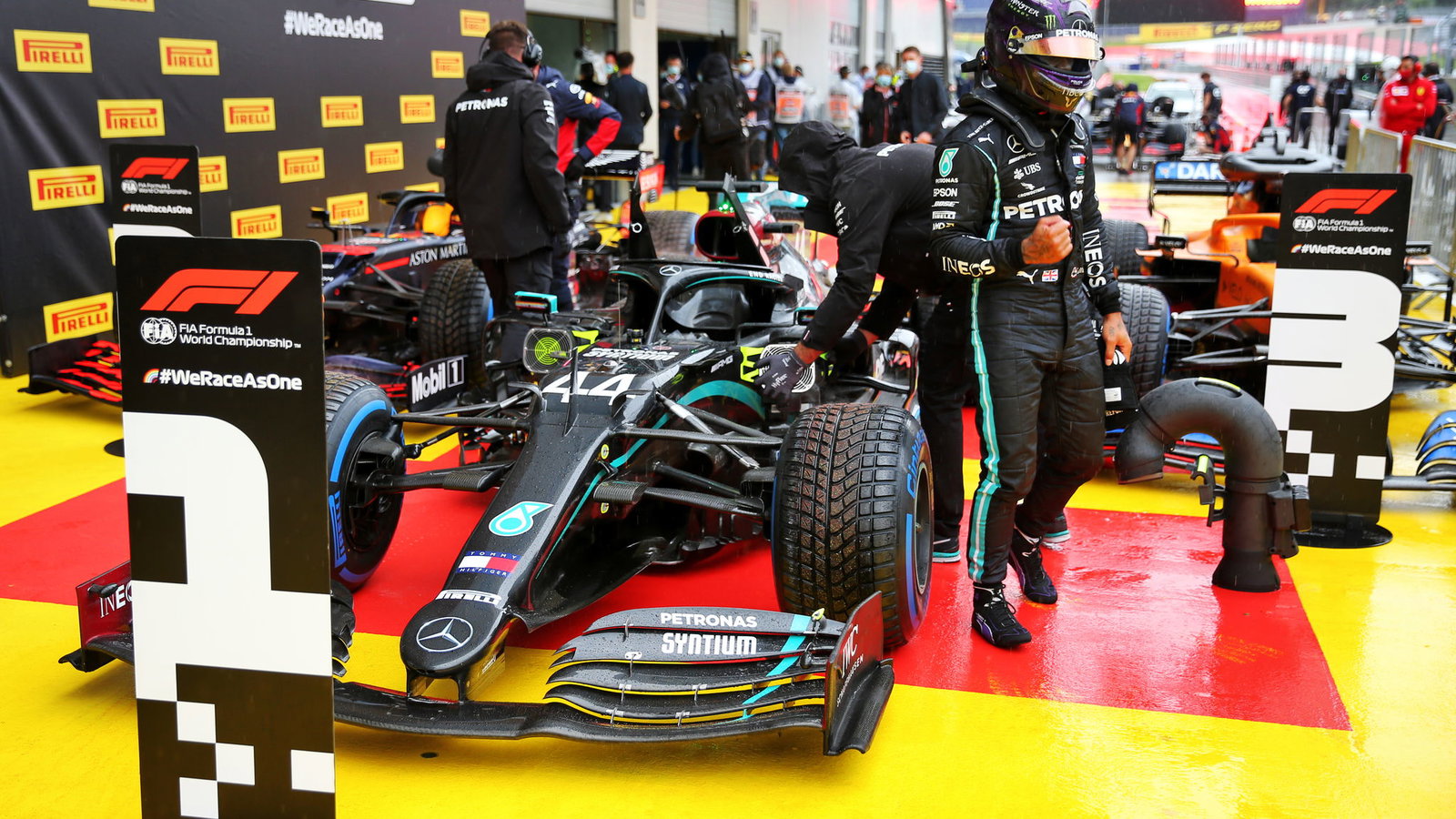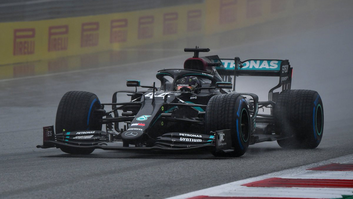 Lewis Hamilton admits to some 'heart in mouth' moments as he powers his way to a dominant pole position for the F1 Styrian Grand Prix at a wet Red Bull Ring