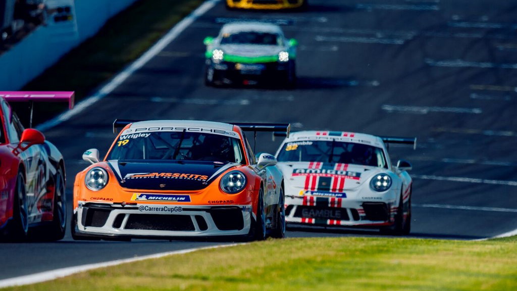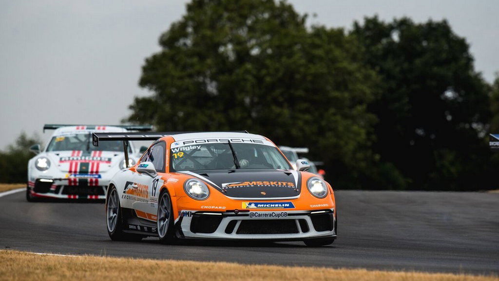Tom Wrigley has won the final reverse grid Porsche Carrera Cup GB race in comfortable fashion after controlling the race ahead of JTR stablemate Lewis Plato at Snetterton.