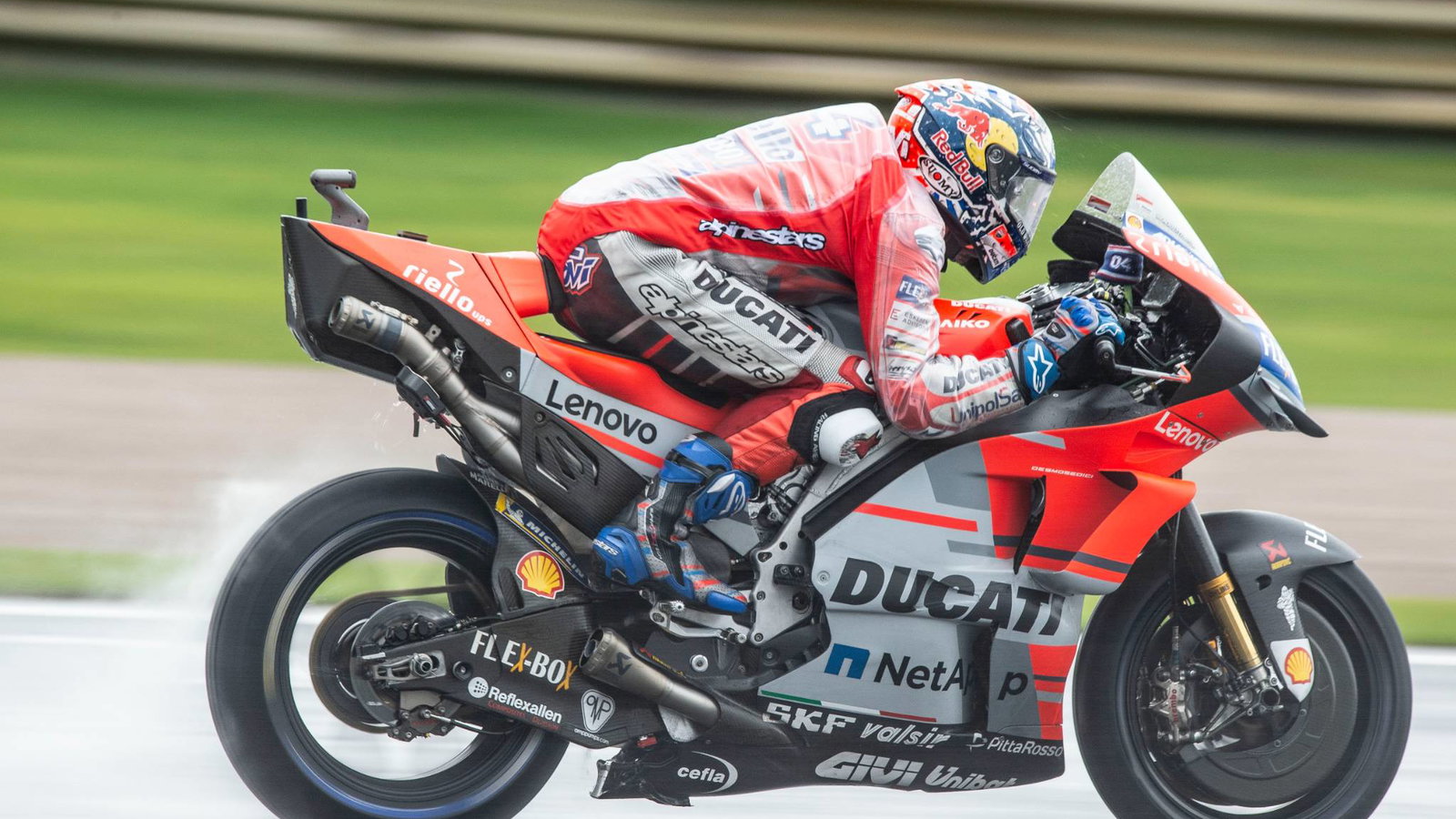 Danilo Petrucci has demonstrated his impressive pace in tricky wet conditions ahead of his final race for Pramac Ducati to edge out Friday’s fastest rider Marc Marquez while both Movistar Yamaha riders toiled to miss out on the top 10.