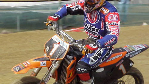 The situation arose when Stefan Everts could no longer stay with Vico in the fight for second and he retained a 20 margin over Marnicq Bervoets. With Smets, Vico and Bervoets divided by seven points before the race and all wrestling for final Championship positions behind number one Everts, a win for Vico, runner-up place for Smets and with Bervoets missing the podium once more (he has only taken 4 in 12 races) meant the Spanish rider swaps his number four plate for a '3' in 2003. KTM finished the race in the first two positions and now have second and third in the 500 class.