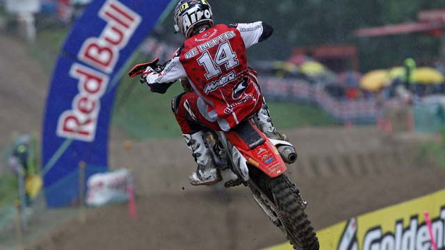 Belgian Ken de Dycker proved the Honda rider's nearest challenger, winning the second moto, but the Teka Suzuki competitor fell whilst battling de Reuver in the closing stages of race one, leaving him just ninth at the flag.