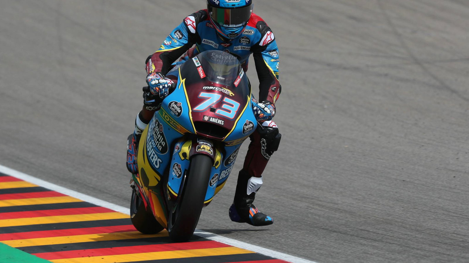 Xavi Vierge (EG 0,0 Marc VDS) recovered from his practice spill for eighth in qualifying, while Assen polesitter Remy Gardner couldn’t quite match those heroics in Germany, he starts ninth for the SAG Team, with Baldassarri completing the top ten.