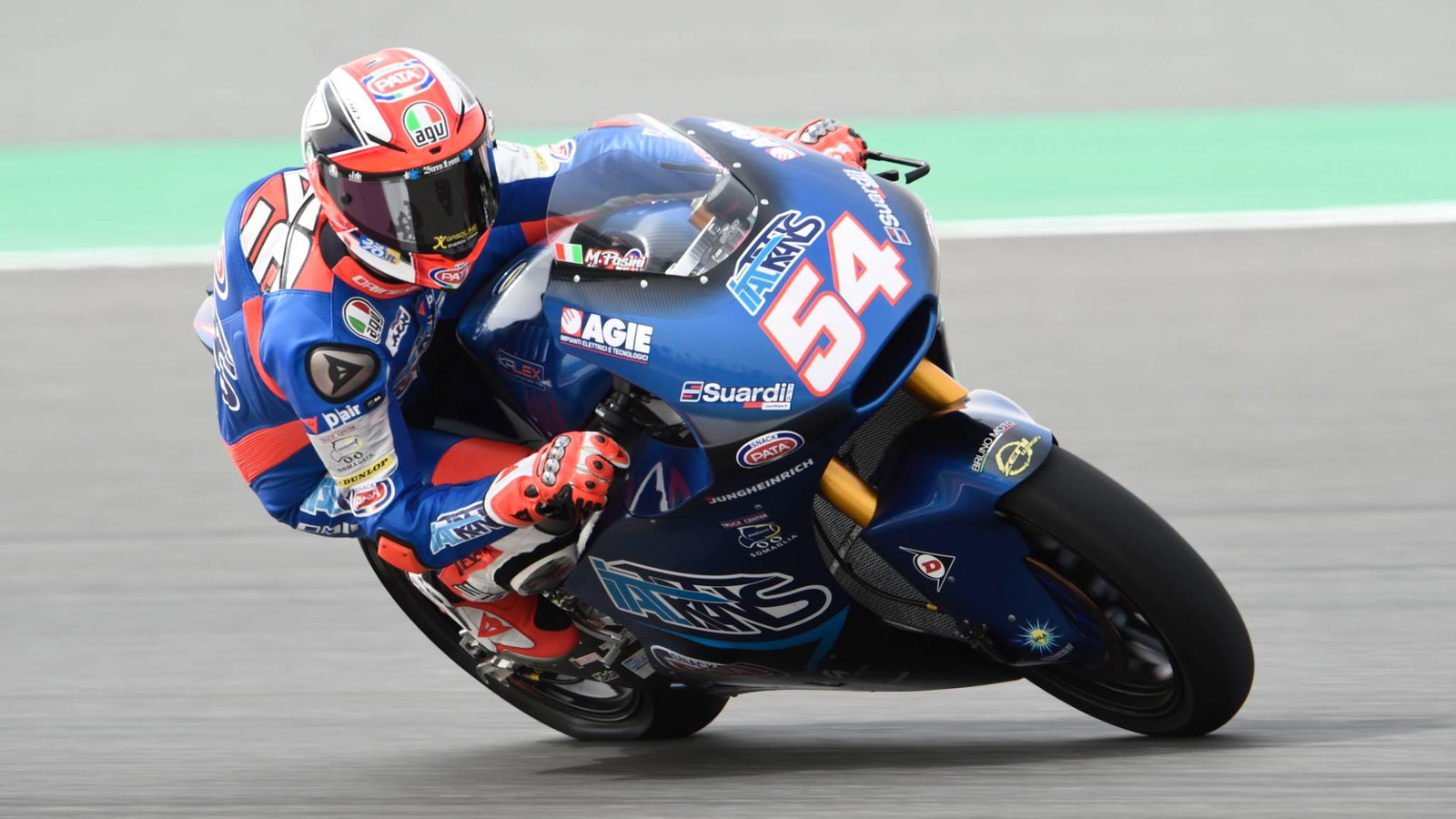 The Italtrans Kalex rider marked his 100th Moto2 start with a hard earned win, his second in the intermediate class, pushed all the way to the end by Xavi Vierge and Miguel Oliveira with the trio swapping the lead until Pasini focussed and took control on the final lap.