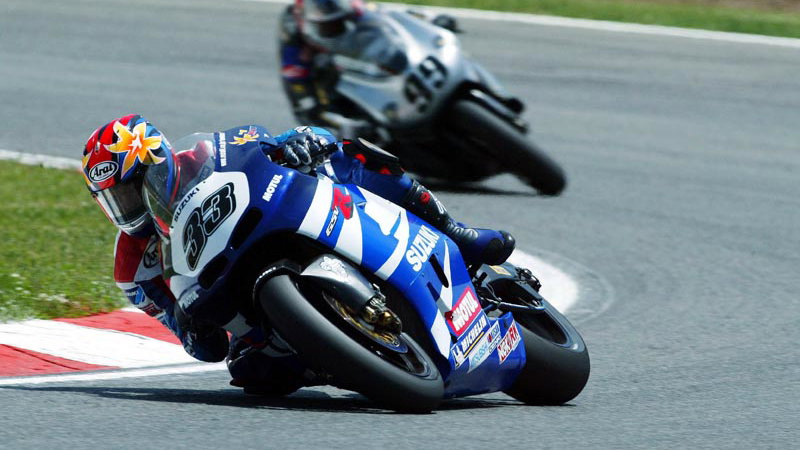 The GSV-R made its racing debut at the first round of the 2002 season, a full year earlier than expected. Ryo, riding as a wild-card entry at the first round of the Championship at Suzuka in April, finished runner-up in the bike's first race, despite atrocious weather conditions. He has been called in as a Team Suzuki wild card rider for a total of five races mid-season to speed up the GSV-R's development progress. He rode at Catalunya in Spain, finishing 11th, at the Dutch TT at Assen in Holland, finishing a credible 15th, and 13th at the British GP at Donington Park.