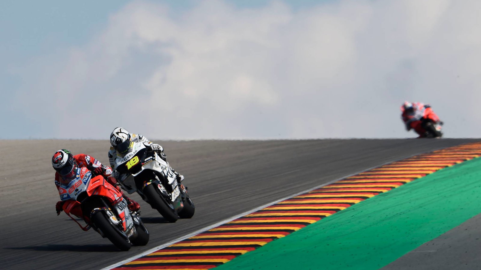 A lack of rear grip led to his near moment with Petrucci. Six laps from the flag, the Majorcan was wide at turn one. With Petrucci on his inside, Lorenzo moved back onto the racing line to enter turn two ahead.