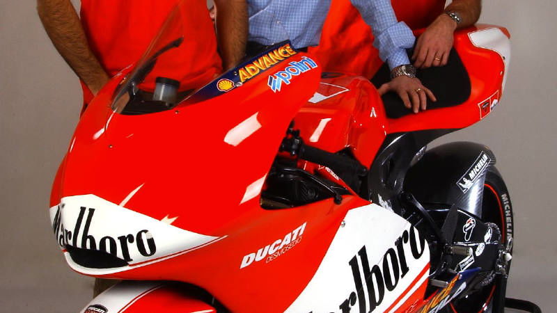 At the 2001 Spanish Grand Prix, Ducati announced its decision to contest the new four-stroke-based MotoGP World Championship, in 2003. Founded by brothers Adriano, Bruno and Marcello Cavalieri Ducati in July 1926, Ducati first made its name producing radio transmitters.