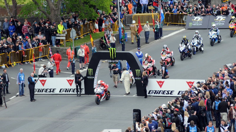 The incident occurred at the start of the Senior TT - the main race of the famous road racing festival on the Island.