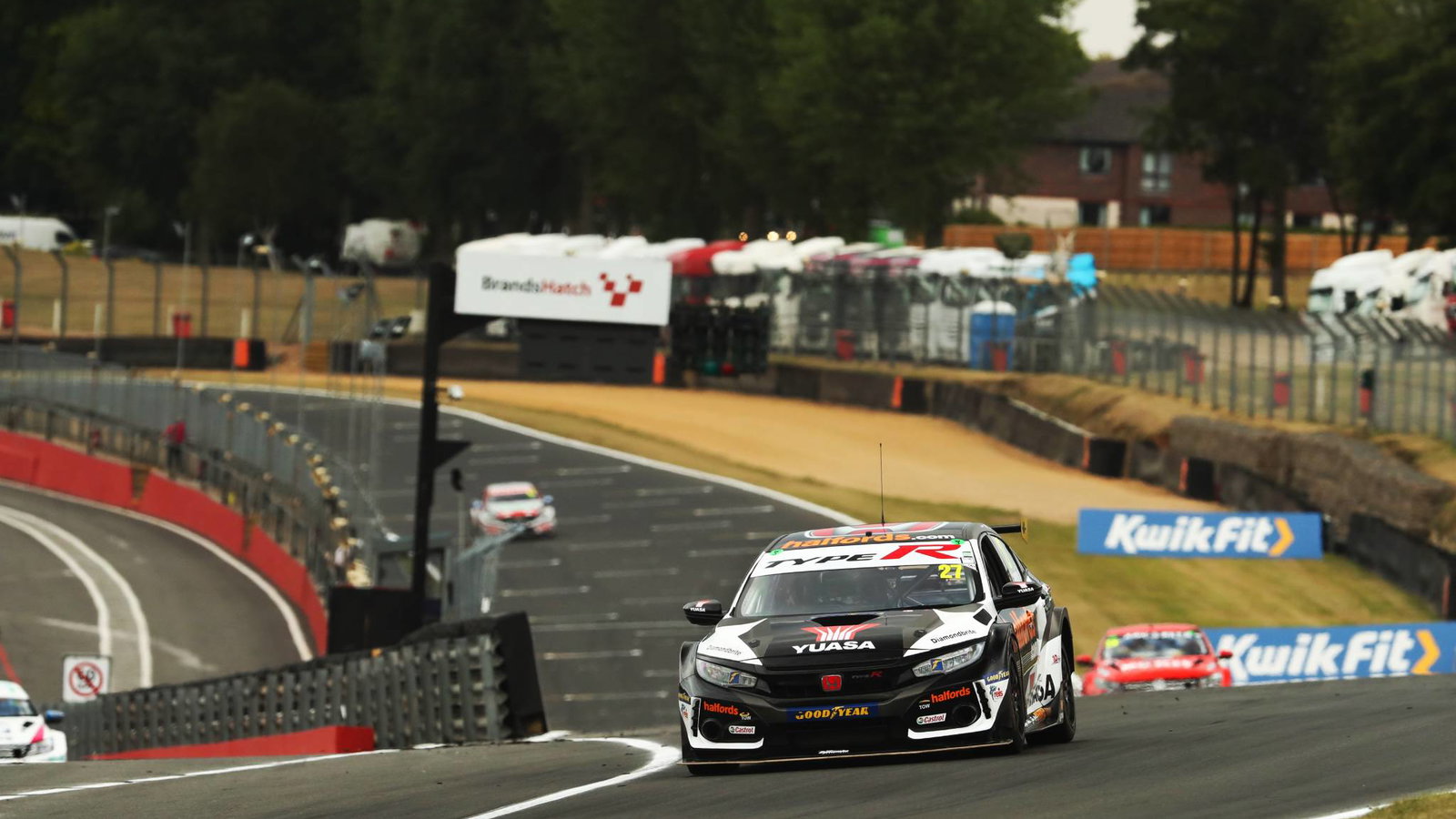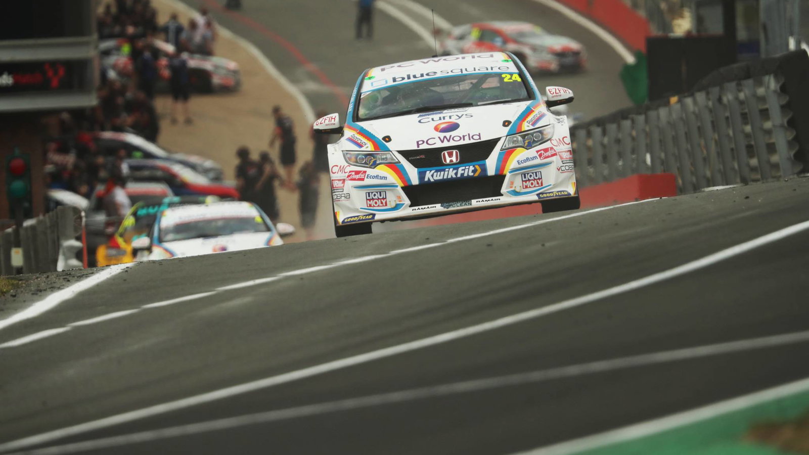 The full Grand Prix circuit begins on the Brabham Straight, an off-camber, slightly curved stretch, before plunging into the right-hander at Paddock Hill Bend. Despite the difficulty of the curve, due to the straight that precedes it, it is one of the track's few overtaking spots.